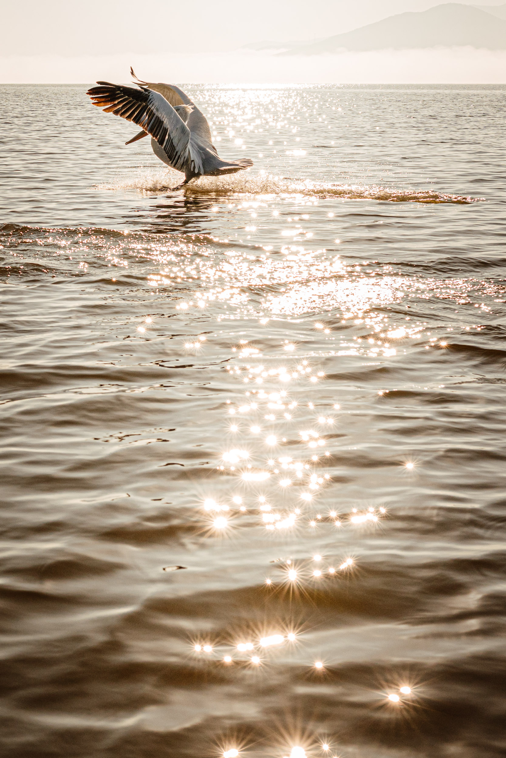 On our way back the fog lifted off completely, the pelicans spotted the boat and flock by flock flew over from the other side of the lake. They were on top of the boat, flying by the boat, behind and in front of it. They were everywhere. Such a surprise to me and dad, as we thought it was all over and we weren’t going to see any more birds on the way back. I was so chuffed that I could capture the birds with the mountains (now visible) in the background. It was such an incredible ending to our adventure.